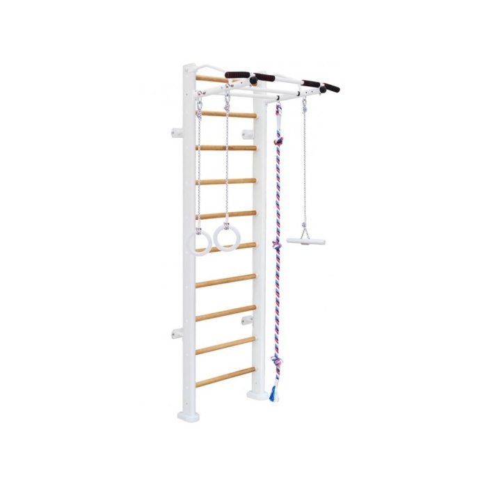 Laste võimlemisrõngad aitavad tugevdada käte lihaseid. Võimlemisrõngad – parim spordivahend, mis ühendab meelelahutuse ja füüsilise arengu võimalusi. Tarzani köis – Annab teie lapsele võimaluse mitte ainult kiikuda erinevates suundades, vaid ka pöörelda telje ümber. Vastupidav puidust trepp võimaldab ronida kompleksi tippu kuni võimlemiskangini. Võimlemiskangi külge kinnitatud köie abil saab teie laps lihtsalt alla tulla.