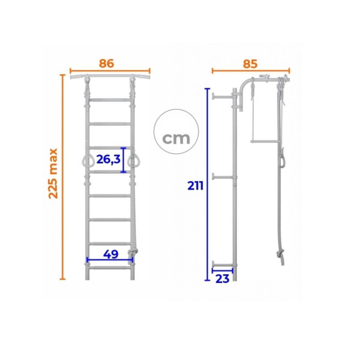 Laste spordikompleks ROMANA Next Top on hõlpsasti monteeritav rootsi sein.