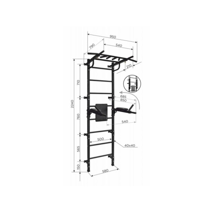 Расстояние от стены до турника - 790 мм